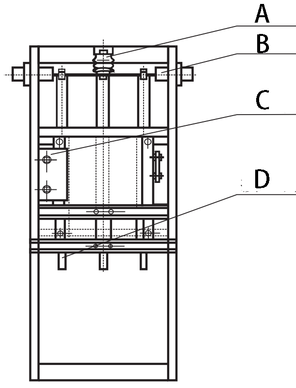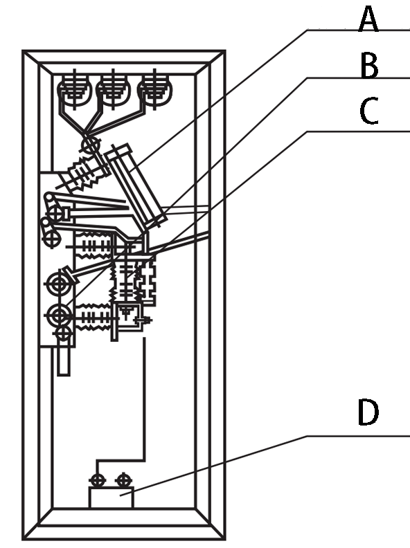 ![]() | Figura 3 A: FUso (porta de faca de isolamento) B: Mecanismo de controle de balas C: Load Switch (em inglês) D.: Transformador de corrente |